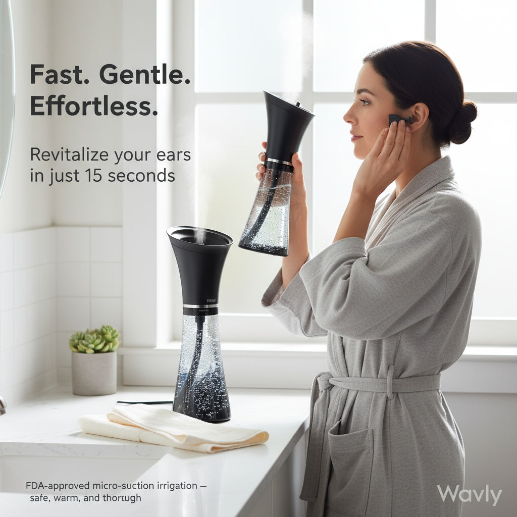 Say goodbye to stubborn ear wax and hello to comfort. With Wavly HydroClean 2.0, you get a safe, quick, and painless clean—anytime, anywhere. Compact, portable, and loved by families, it’s the only ear-care device you’ll ever need.